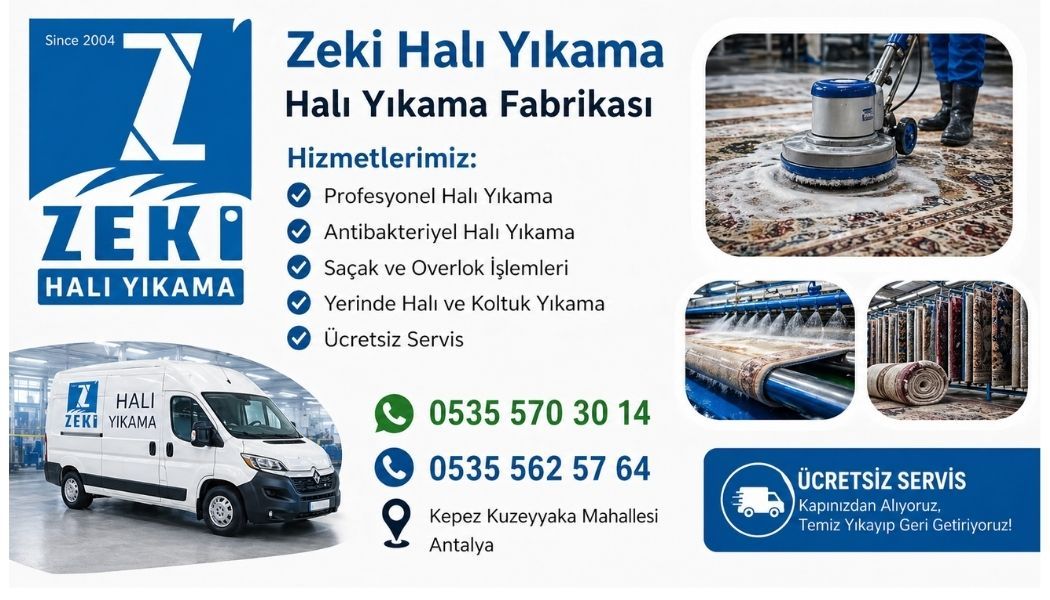 Kaliteli halı yıkama hizmeti; doğru ekipman, deneyimli personel, şeffaf fiyatlandırma ve zamanında teslimatla tamamlanır. Halınızın türüne uygun işlem yapılması, teslimatta temiz koku ve düzgün paketleme, müşteri memnuniyetini artıran temel unsurlardır. Kepez Kuzeyyaka Mahallesi halı yıkama hizmetimizde bu unsurların tamamına dikkat ederek profesyonel bir süreç sunuyoruz.